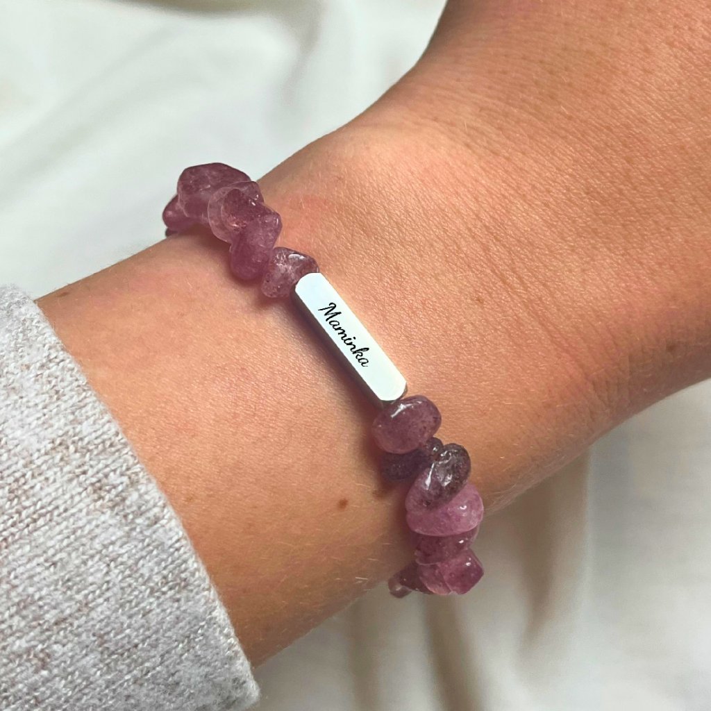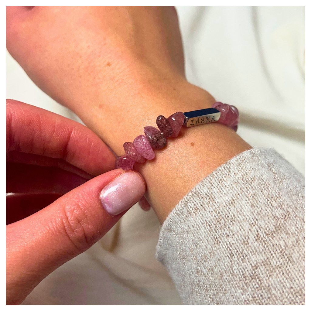 Dámský náramek TUBUS s gravírováním - Jahodový křemen