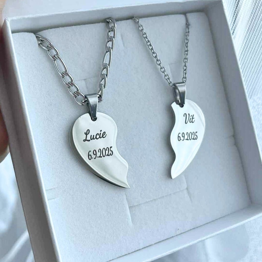 Náhrdelník pro páry - Srdce s vlastním textem